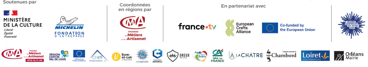 L’Institut pour les Savoir-Faire Français (ancien INMA) pilote et coordonne les Journées Européennes des Métiers d’Art®. En région Centre-Val de Loire, il s’appuie sur la Chambre de Métiers et de l’Artisanat Centre-Val de Loire avec le soutien de l’Union Européenne (FEDER) et de partenaires territoriaux.